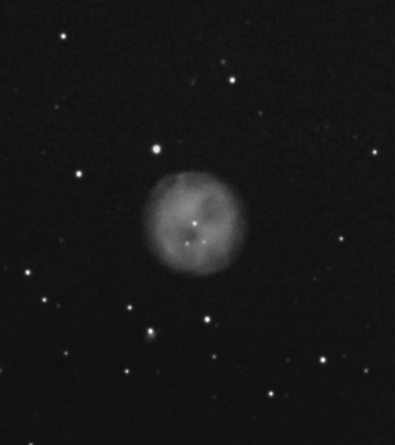 Martin Germano obtained this fine b/w film image of the Owl Nebula M97 with a self-made Newtonian telescope.