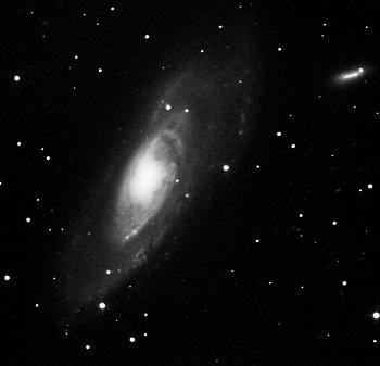 Spiral galaxy M106 as photographed by Martin Germano. This b/w film image was obtained with a Newtonian telescope.
